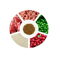 Состав: Сушеный куриный белок (34%), кукуруза, цельный горох, куриный жир, гидролизованный куриный белок, белый рис (4%), сушеный белок ягненка (4%), сушеная свекольная мякоть, кукурузный глютен, дрожжевой экстракт (натуральный источник белка) (0,5%), сушеный лосось (0,5%), лососевый жир (0,5%), сухие пивные дрожжи (0,5%), минералы, сушеные креветки, сушеная клюква, юкка Шидигера.
