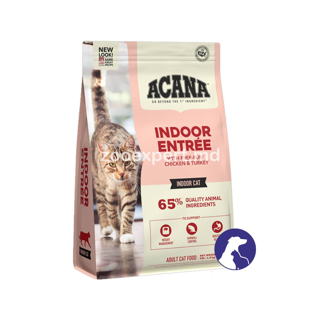 Acana Indoor Entrée - Высокопитательный и биологически соответствующий сухой корм на основе куриного мяса, сельди, индейки и кролика для взрослых домашних кошек всех пород с низким уровнем активности.