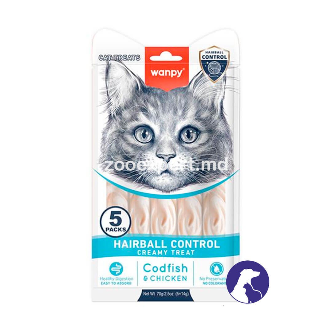- Wanpy Cat Functional Creamy Treats Codfish & Chicken Hairball Control, кремовое лакомство для кошек 70gr