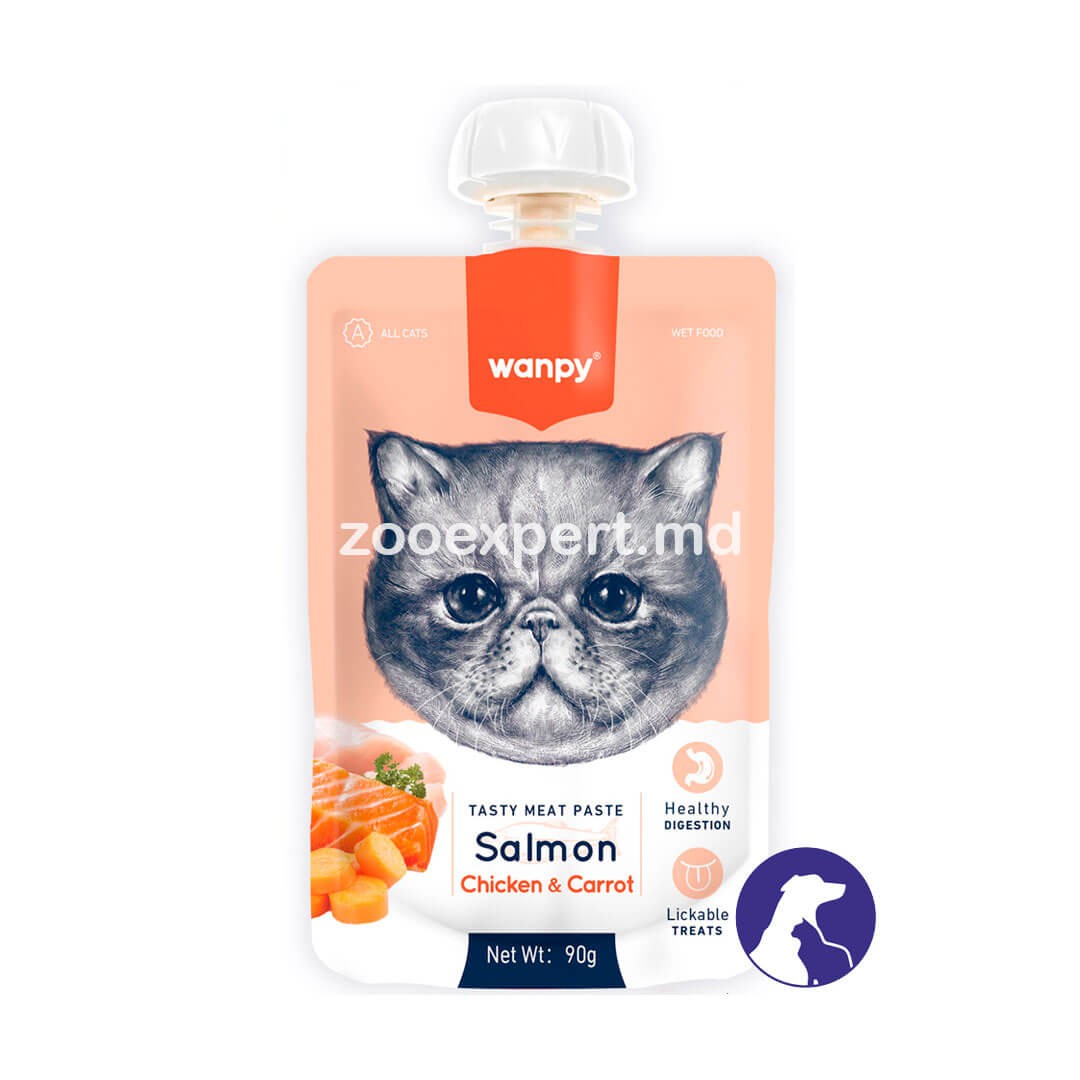 - Wanpy Cat Meat Paste Salmon, Chicken & Carrot, мясная паста для кошек из лосося, курицы и моркови 90gr