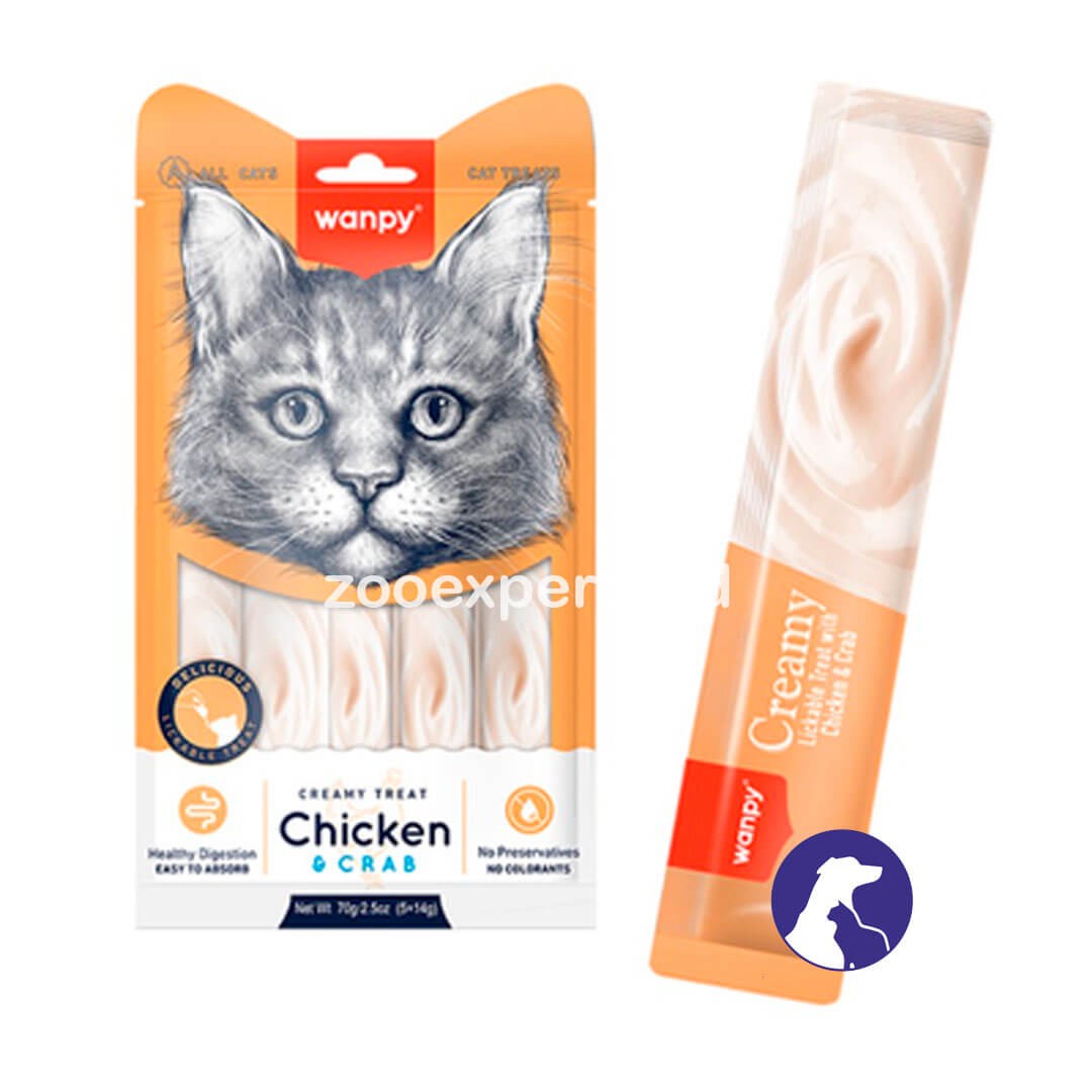 - Wanpy Cat Creamy Treats Chicken & Crab, кремовое лакомство для кошек с курицей и крабом 14gr
