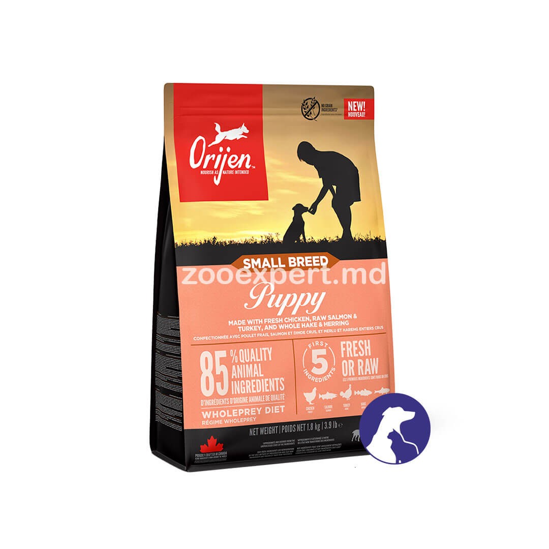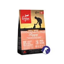 Orijen Puppy Small Breed - Высокопротеиновый биологически соответствующий сухой корм со свежим куриным мясом, индейкой, цельными яйцами, лососем и другими видами рыбы, обогащенный фруктами, овощами и лекарственными травами для щенков малых пород.