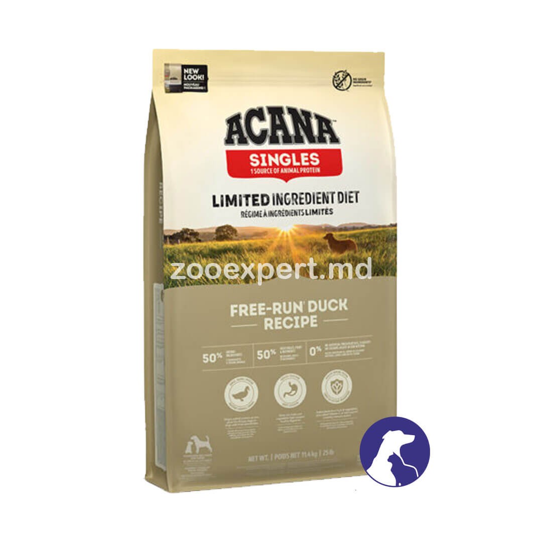 Acana Free-Run Duck este o formulă cu număr limitat de ingrediente, în care carnea de rață (50%) reprezintă unica sursă de proteine ușor digerabile, fiind ideală pentru câinii cu digestie sensibilă.